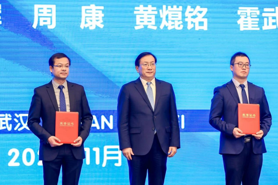 11月16日,第二十一届华侨华人创业发展洽谈会在武汉东湖国际会议中心开幕。第八届“华创杯”创业大赛10名获奖选手亮相华创会,接受颁奖。我院姚政鹏博士的项目“极大规模集成电路在线光学检测装备研发与制造”获一等奖,为我校争得了荣誉,为我校党外知识分子树立了榜样。