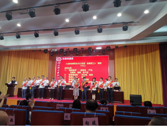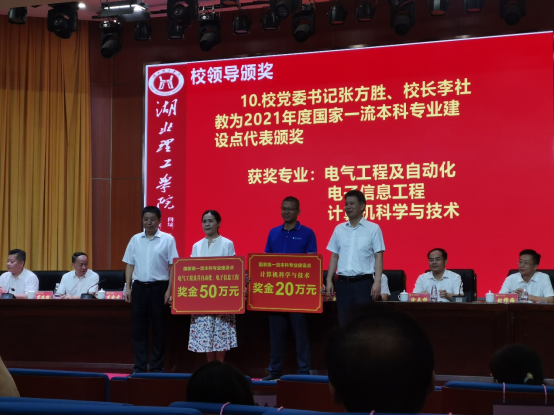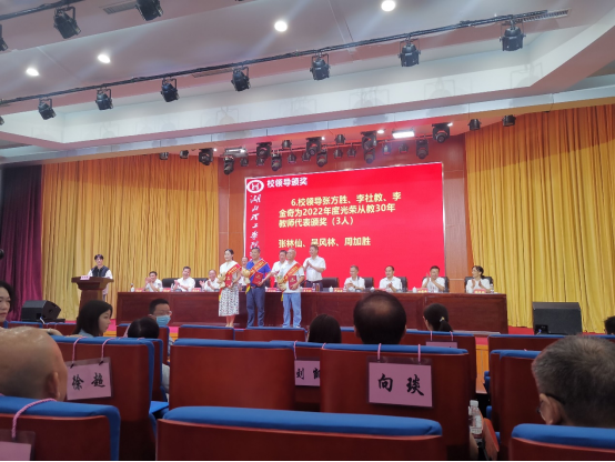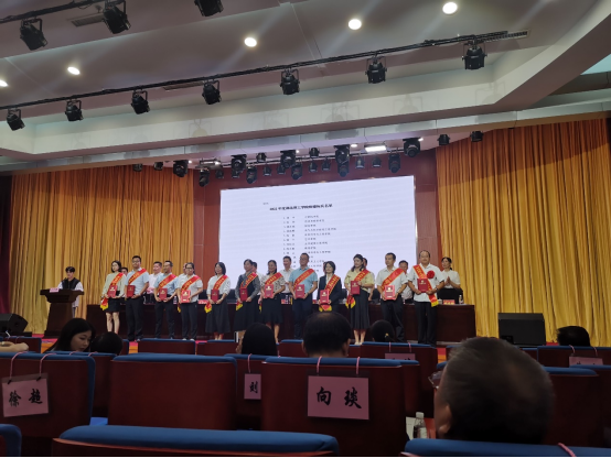 电气工程及其自动化、电子信息工程两个专业获批2021年度国家级一流本科专业建设点。张林仙院长作为光荣从教30年教师代表上台领奖,姚政鹏老师获校级师德标兵荣誉称号,严伟老师获得2022年度“最美教师”荣誉称号,肖贵贤老师获得校级“优秀教师”荣誉称号,张秋月教师获得学校2022年度课程思政教学竞赛优秀奖。