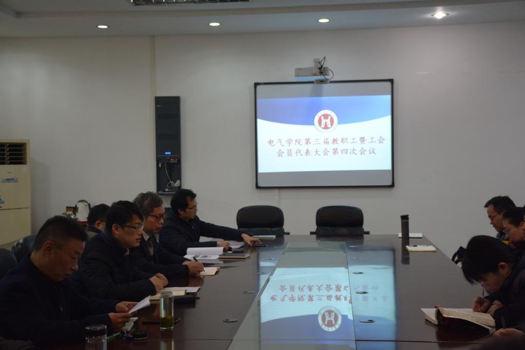(通讯员 陶彪)2019年12月17日上午,电气学院于K2二楼会议室召开第三届教职工代表大会暨工会会员代表大会第四次会议。电气学院领导班子及全体教师参会。