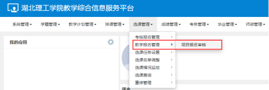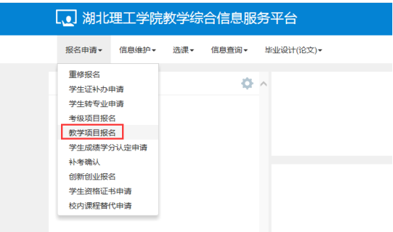 3. 点击“报名申请——教学项目报名——免修免考——报名”