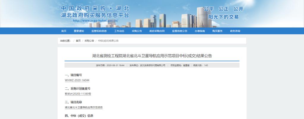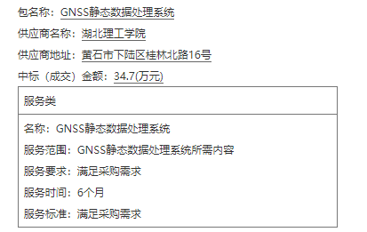 (通讯员 邓连生)近日,湖北省政府采购网正式公告,我校williamhill中国科研团队申请参加的“湖北省北斗卫星导航应用示范”招标项目,通过前期论证、提交投标文件、标书评定等环节成功中标。此次我校中标的是该项目第三包“GNSS静态数据处理系统”。