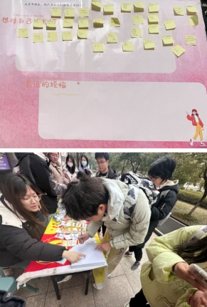 此次活动中,志愿者在现场设置了心愿墙,让每一位女生都可以留下自己的祝福和心愿。同学们十分积极踊跃,纷纷将自己所想表露出来,在勇敢地表露心扉的同时,也让我们心理部成员得以更好地了解到她们的烦恼与愿望,从而可以在今后的工作中更加明确我们的工作目标。抽奖小游戏也极大地激发起了同学们的兴趣,现场洋溢着欢声笑语。同时学生们也为学院女老师准备了精美礼物和鲜花表达感恩与祝福。