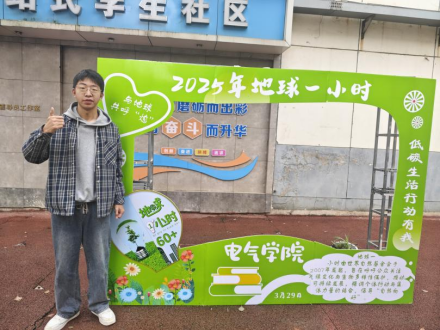 电气学院设置了“地球一小时”环保节能打卡活动背景墙,鼓励同学们前往主题背景墙打卡合影,并向来往学生宣传“地球一小时”的这项环保公益活动。同时,学院成立“地球一小时”公益活动小组,在群里分享打卡照片,交流节能减排、碳达峰和碳中和等环保理念,为我院学生搭建了“参与-互动-反馈”的公益活动闭环。
