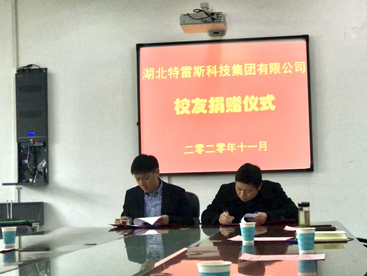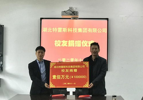 校友彭波表示,作为理工学子,非常荣幸能够为培育自己的母校做出一份贡献。自己出身农村矿工家庭,初入大学就立志要做一个不平凡的人,学生时期萌生的创业头脑和不断努力、尝试,为今日的事业奠定了基础。真诚感谢母校对他的培养和帮助!20年后的今天,母校旧貌新颜,新时代的同学们正逢其时,希望他们珍惜时光,在知识的殿堂里领悟人生的真谛,刻苦钻研、勤学勤修,待学成之日回报母校。最后他代表湖北特雷斯科技集团有限公司祝福母校桃李争妍、英才辈出,祝福同学们学有所成,实现理想抱负。