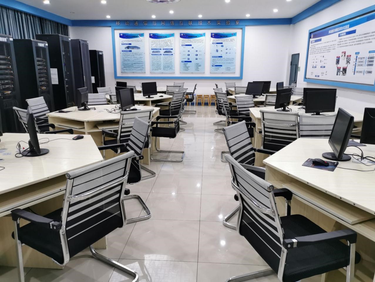 本实验室设备涵盖三层接入交换机、企业路由器、管理设备、服务器、OLT设备、光接入设备、机柜及辅材、LCD拼接屏、学生电脑等。实验室配套软件涵盖ENSP网络仿真软件、4G全网仿真软件、讯方e-Bridge实验系统。