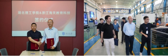 5月13日下午在走访宁波海天集团股份有限公司期间,实地参观了企业的生产车间、研发中心、海天教育科技集团等部门,充分了解企业的生产经营情况和技术创新成果。双方围绕产学研合作、学生就业实习等方面进行了深入探索与实践,签订就业实习基地协议并挂牌。