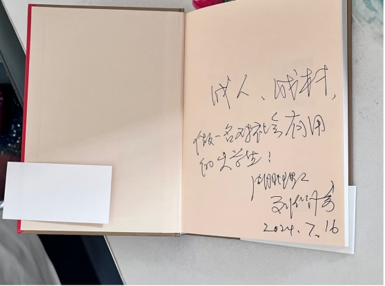 随后,刘校长来到23级徐同学家里,详细了解学生的在校生活、住宿环境、食堂就餐情况等。刘校长得知徐同学成绩突出并且有考研计划时,鼓励其利用语言优势,加强专业课学习,为三年后的考研打下坚实的基础。同时,刘校长督促徐同学在学习之余,加强体育锻炼,积极参加学校的球类运动,做一个德智体美劳全面发展的学生。最后,刘校长在赠送给徐同学的书籍上亲笔寄语“成人、成材,做一名对社会有用的大学生”。